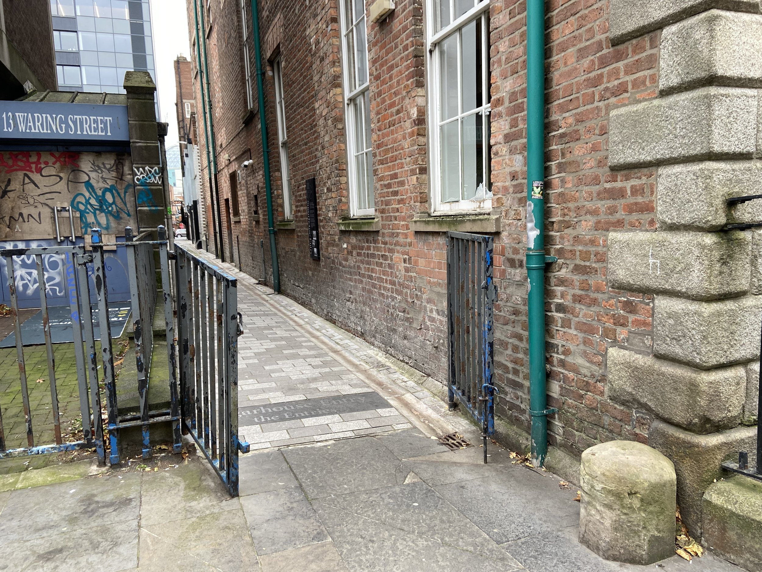 The lantern light flickers against stone walls as the evening mist rolls through the narrow streets of Belfast’s old merchant quarter.